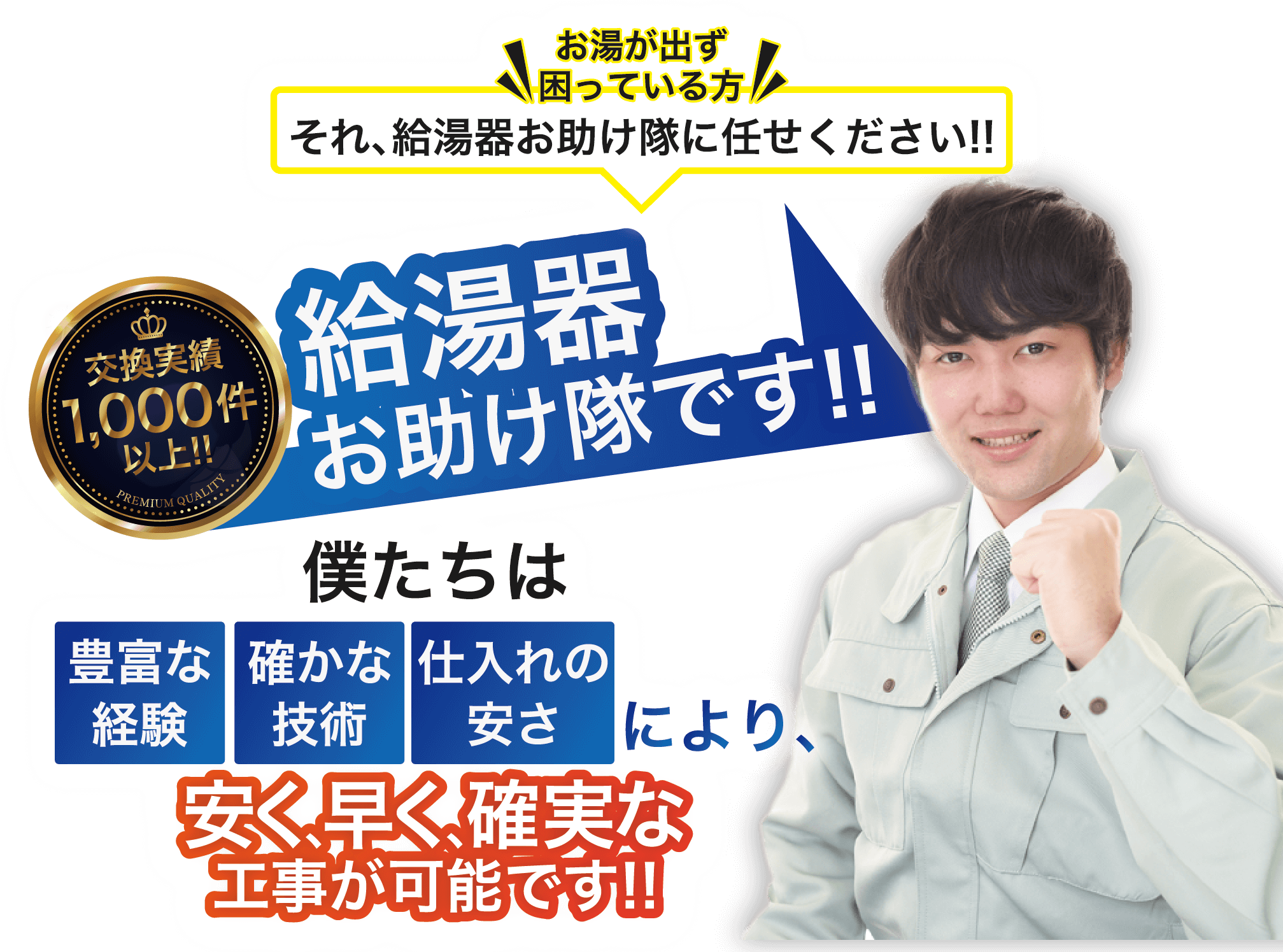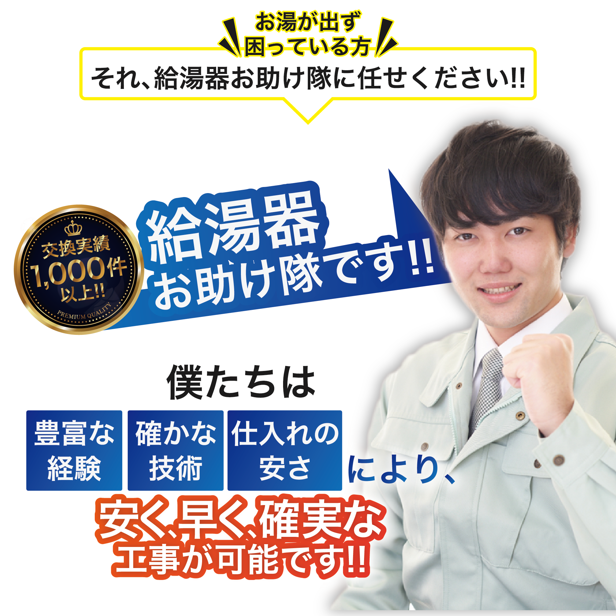 給湯器が急に故障して壊れてしまったのですが、急な問い合わせなのに迅速に対応してもらえて助かりました!